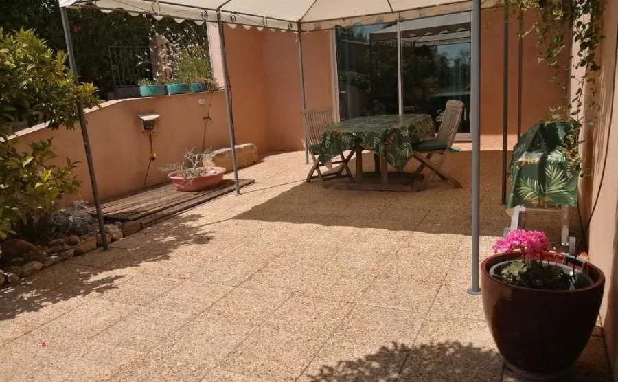 Studio indépendant meublé avec terrasse idéale pour un seniors. Quartier calme, proche des commerces et des transports.